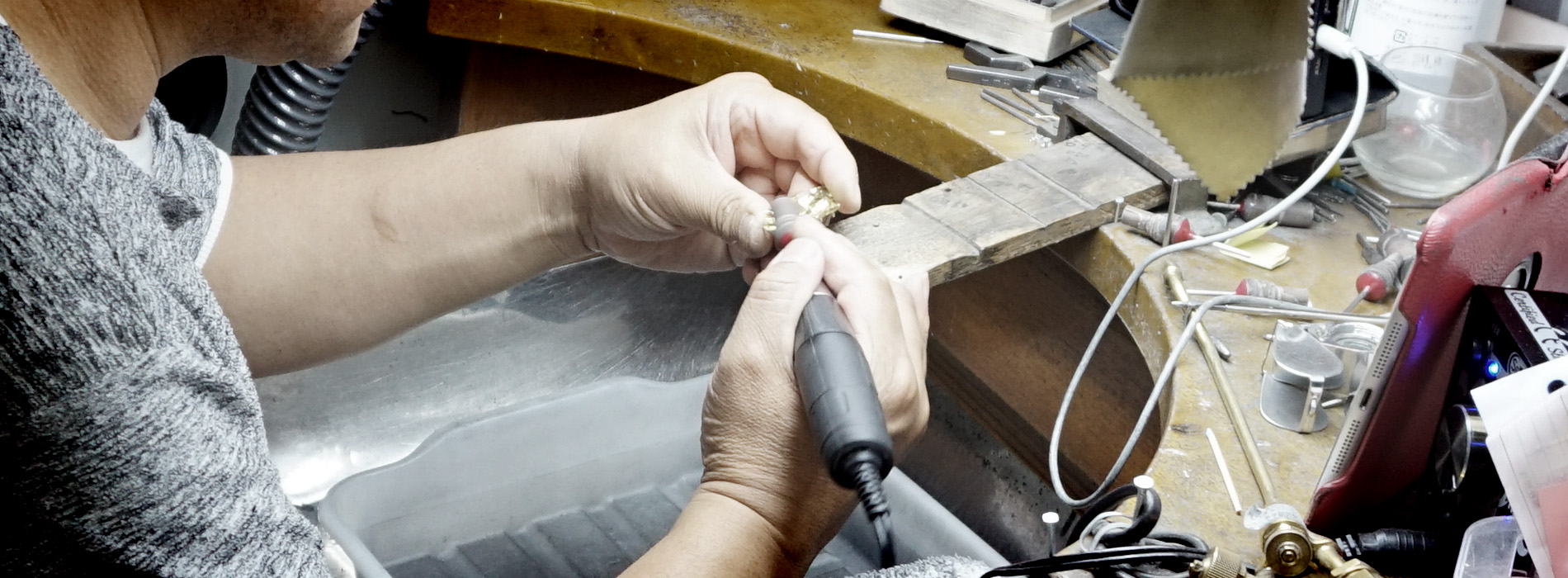 指輪のサイズ直し、変形直し、石留め、新品仕上げ、石揺れの直し、ネックレスの修理、チェーン切れ、 ピアスをイヤリングに・イヤリングをピアスに加工などジュエリーの修理・加工のことならなんでもお気軽にお問合せくださいませ。