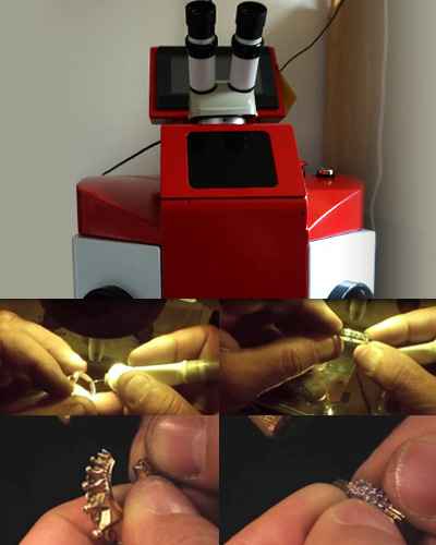 周囲への熱影響が非常に少ないため、既に宝石や熱に弱い物が、本体にがついている。